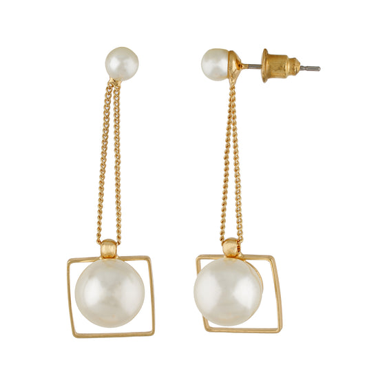 Black Antique Gold CZ Copper Jhumki with Pearl Hanging