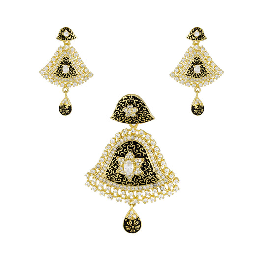 Stylish Black Antique Gold Plated CZ Copper Pendant Set for Ladies and Girls