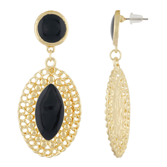 Black and Gold Oval Shape Enamel Enhanced Earring