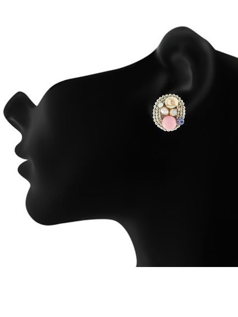 Beige and Gold Floral Shape Earrings for No Pierced Ears