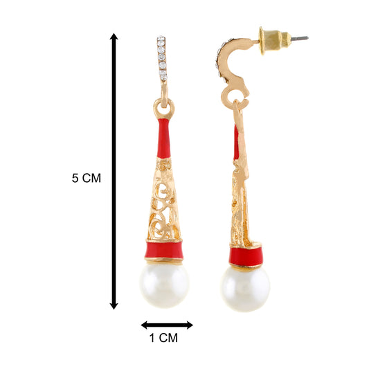 Red and Gold Drop Design Hanging Earrings