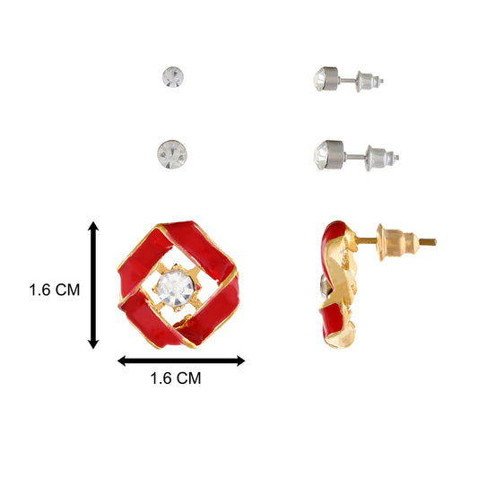 Red Round Design Stud Earrings