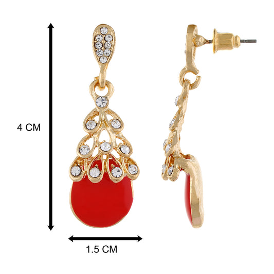 Red Drop Design Hanging Earrings