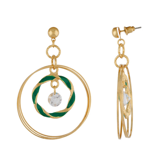 Green and Gold Rings Design Earring