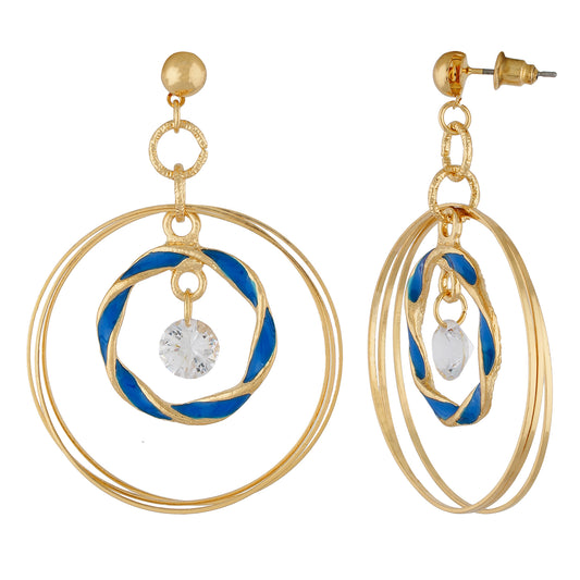Blue and Gold Rings Design Earring