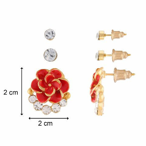 Mini Red Rose Shape Ear Stud