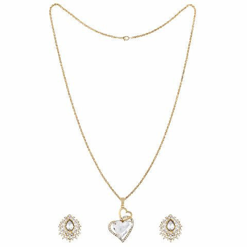 Lovable Loving Silver Colour Heart Shape Pendant with Chain and Earrings for Girls and Women