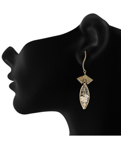 Glamorous Gold Leaf Shaped Long Ear Stud