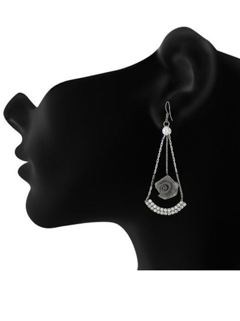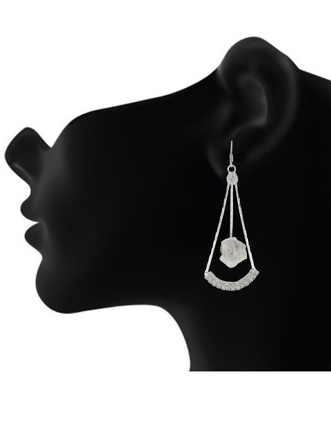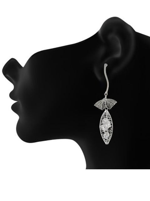 Glamorous Silver Leaf Shaped Long Ear Stud