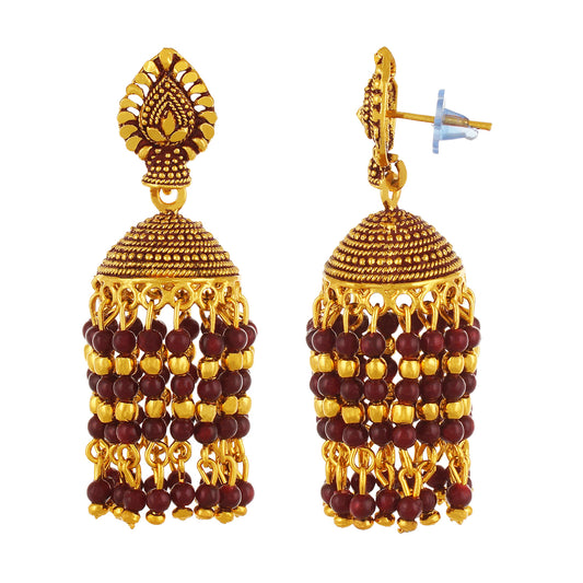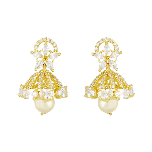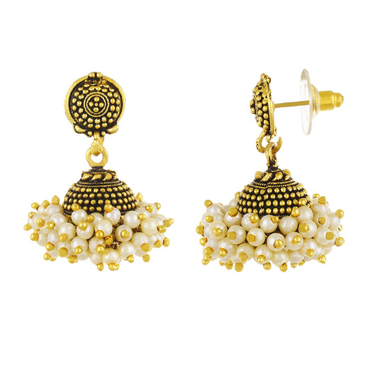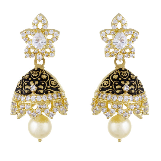 Black Antique Gold CZ Copper Jhumki with Pearl Hanging