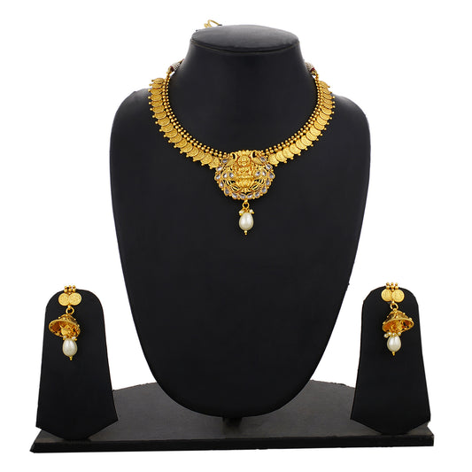 Gold Plated Goddess Lakshmi Coin Design Necklace Earrings Jhumki Jewelry Set for Women