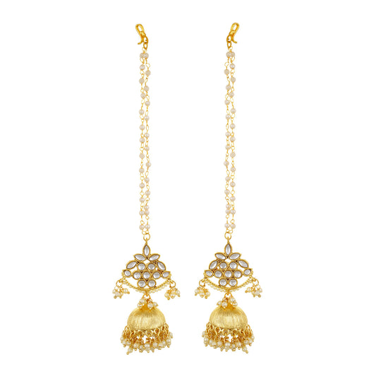 Gold Plated Traditional Long Kundan Pearl Necklace and Jhumki Earrings Fashion Jewelry Set for Women and Girls