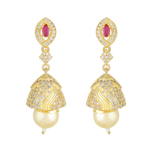 Rodhium CZ Copper Jhumki with Pearl Hanging