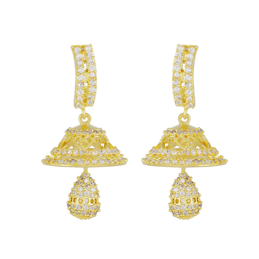 Drop Shape Gold CZ Copper Kundan Jhumki