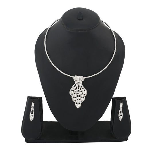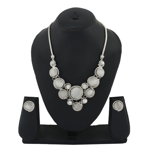 Silver Colour Round Necklace and Earrings for Girls and Women
