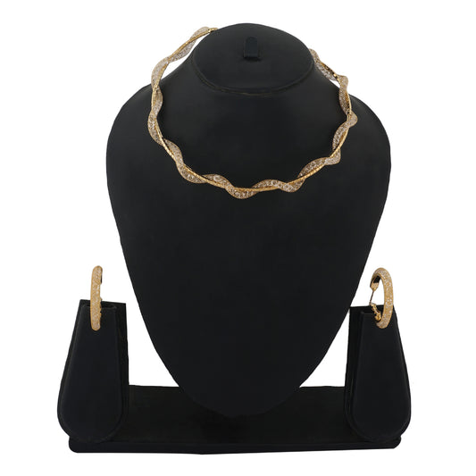 Gold Colour Formless Necklace and Earrings for Girls and Women