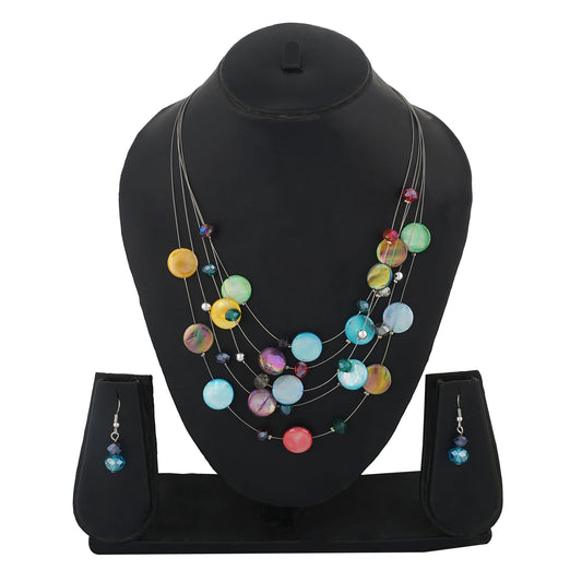 Multi Colour Button Necklace and Earrings for Girls and Women