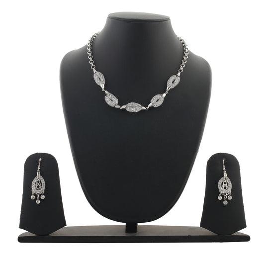 Silver Colour Oval Necklace and Earrings for Girls and Women
