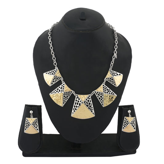 Gold Colour Geometrical Necklace and Earrings for Girls and Women