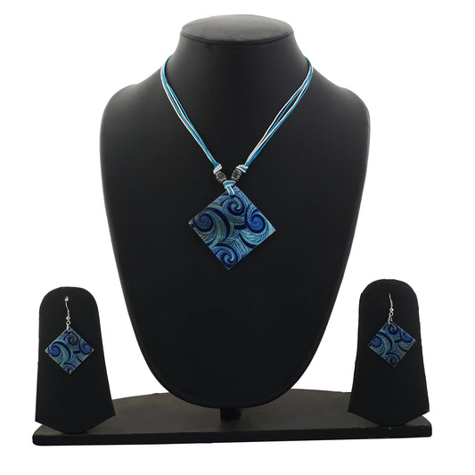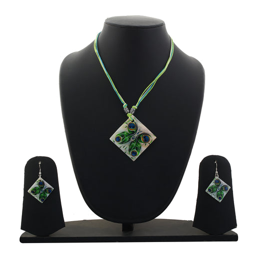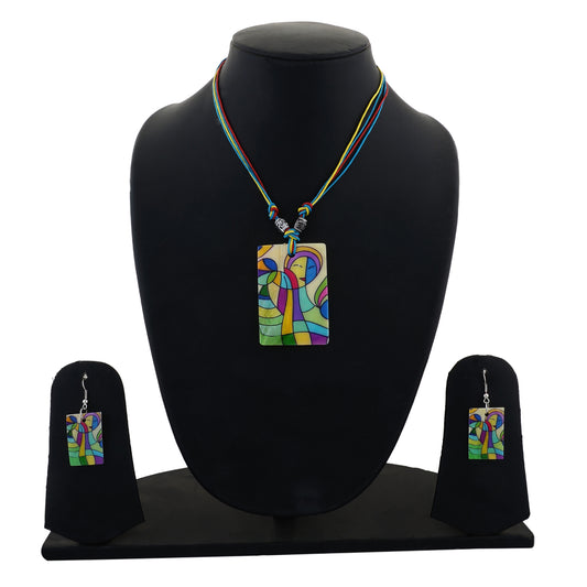 Loveable Multi Colour Printed Shell Rectangular Shape Necklace Set for Girls and Women