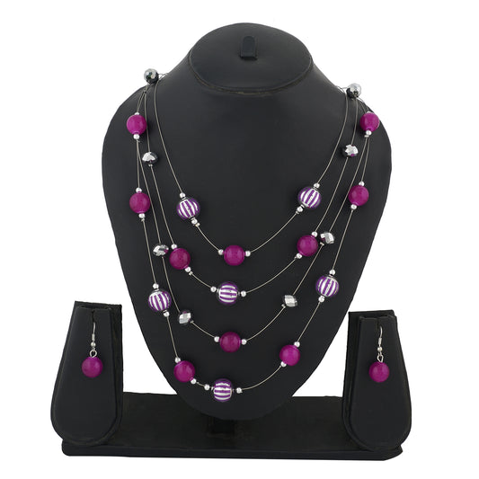Pink Colour Layered Necklace and Earrings for Girls and Women