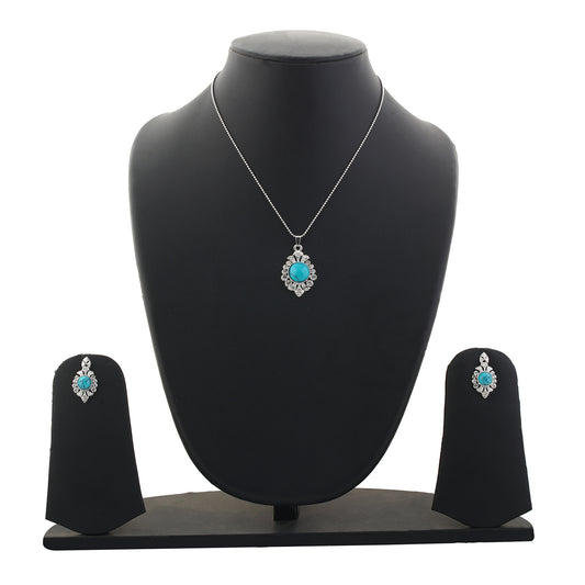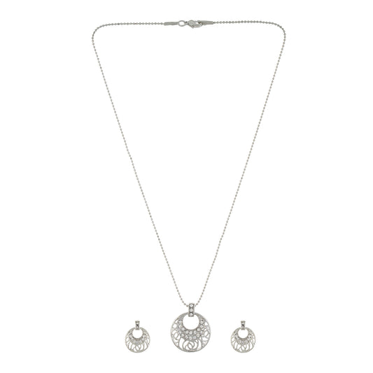 Stylish Silver Colour Pendant with Chain and Earrings for Girls and Women