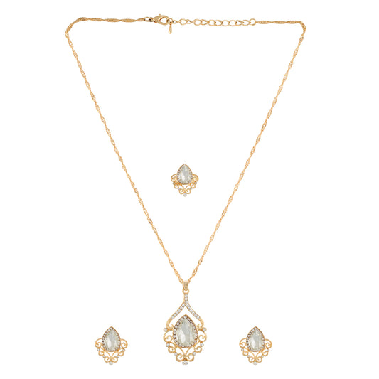 White Colour Drop Pendant with Chain, Finger ring and Earrings for Girls and Women