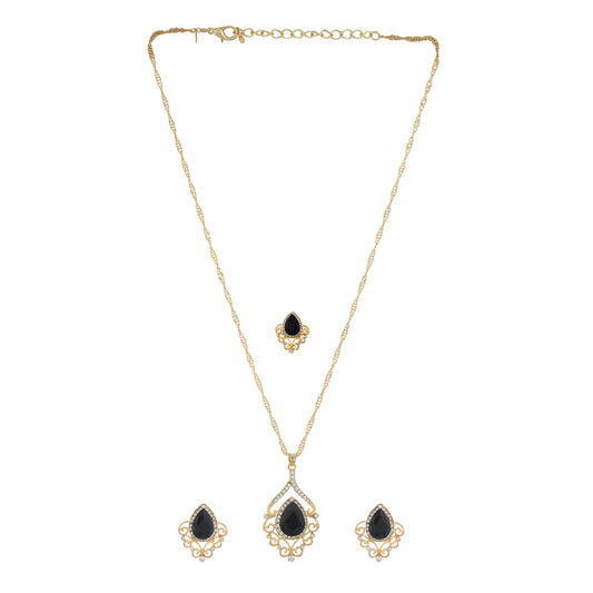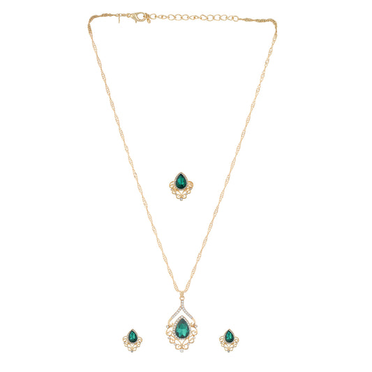 Glamorous Gold Colour Drop Shape Pendant Set for Girls and Women