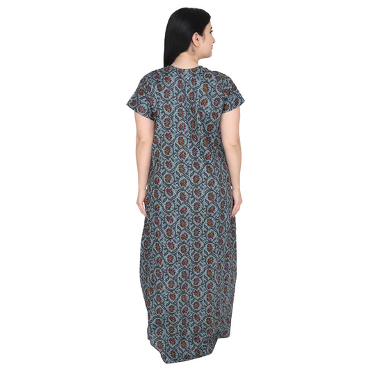 Printed Cotton Nighty For Women - Grey