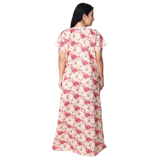 Printed Cotton Mother Nighty For Women - Pink